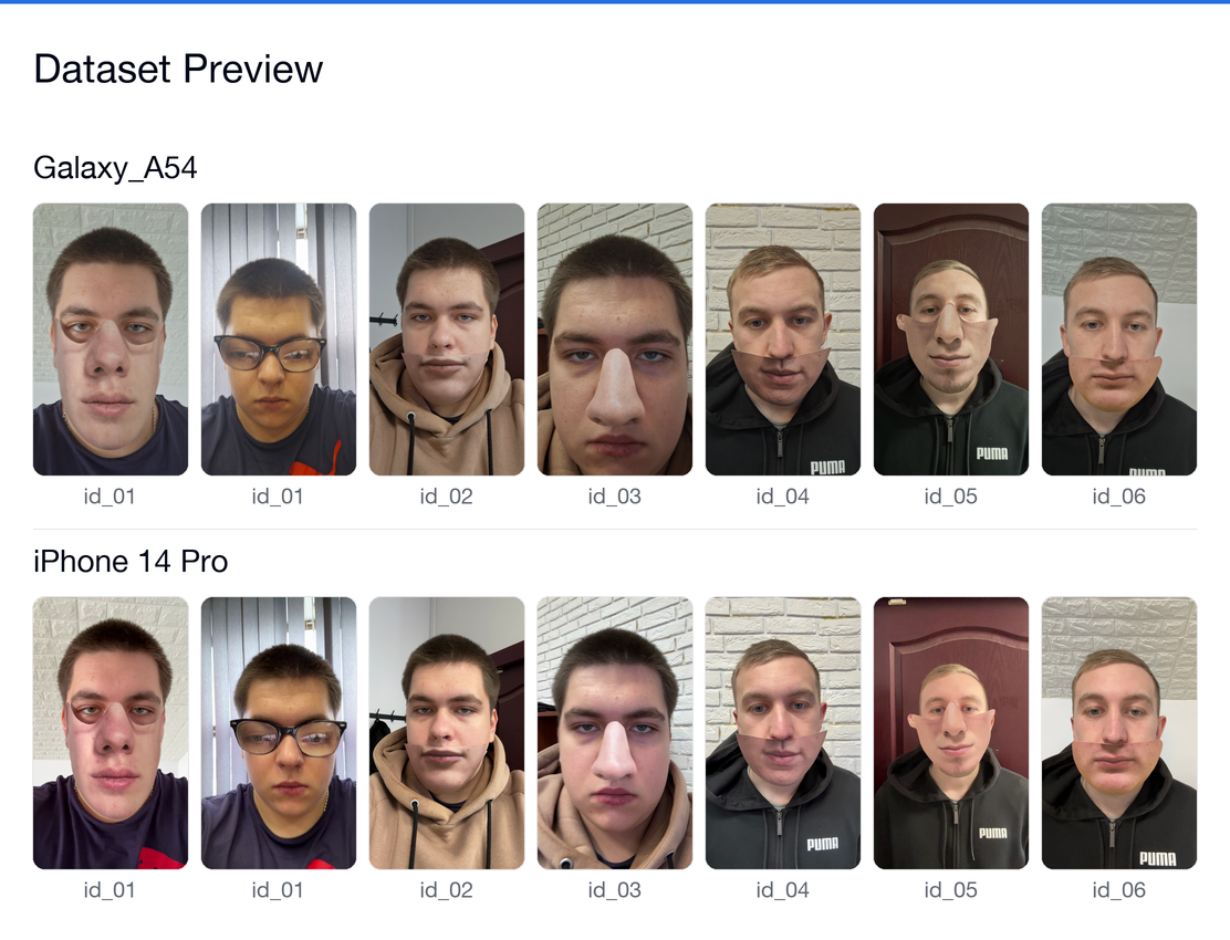 3,000 videos of partial 2D paper mask attacks from 50 participants, recorded on Galaxy A54 and iPhone 14 Pro. Built for training and evaluating face anti-spoofing, liveness detection, and presentation attack detection systems.