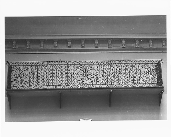 Balcony | Balcony | 1800–1830 | 300 | false | false | true | The American Wing | 1917 | American | null | 1,800 | 1,830 | Wrought iron | 44 1/2 x 242 in. (113 x 614.7 cm) | Rogers Fund, 1917 | Made in | Petersburg | United States | http://www.metmuseum.org/art/collection/search/300 | null | Metropolitan Museum of Art, New York, NY | Balconies | http://vocab.getty.edu/page/aat/300002588 | https://www.wikidata.org/wiki/Q170552 | 000000258 | success | null | null | null | null | null | {} | 88edd438315b326a0f12d45884f3928cb5baeede2e991ecffd4409cb8aba4044 | ||||||||||||||||||||||||||||||