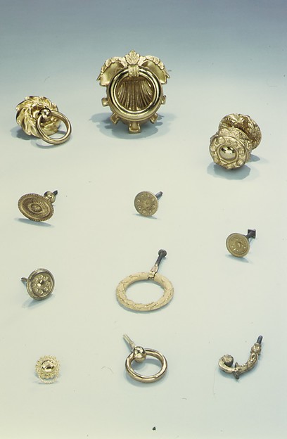 Furniture hardware | Furniture Hardware | Henry Kellam Hancock | 1820–30 | 296 | false | false | true | 774 | The American Wing | 1968 | 113 | Retailer | 1816–1851 | Hancock, Henry Kellam | 1816 | 1851 | 1,820 | 1,830 | Gilt brass | Backplate: Diam. 2 3/4 in. (7 cm) Ring pull: Diam. 2 1/4 in. (5.7 cm) | Gift of Mrs. Edward Hunting Smith, 1968 | Possibly made in|Possibly made in | England|France | http://www.metmuseum.org/art/collection/search/296 | https://www.wikidata.org/wiki/Q116373512 | null | Metropolitan Museum of Art, New York, NY | 000000254 | success | null | null | null | null | null | {} | f365597f2857fdcc285c10ff59000132fbb493ebad7656091679152ccdc54a70 | |||||||||||||||||||||||||||