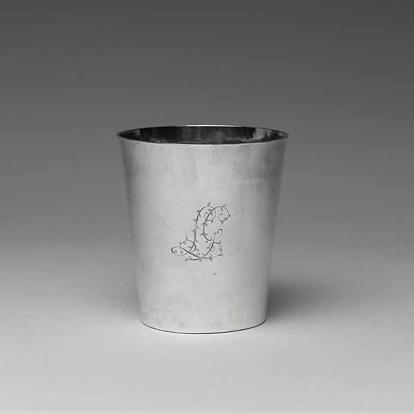 Beaker | Beaker | Jacob Jacobse Lansing | 1770–90 | 423 | false | false | true | 774 | The American Wing | 1901 | American | 755 | Maker | baptized 1714–1791 | Lansing, Jacob Jacobse | American | 1714 | 1791 | 1,770 | 1,790 | Silver | Overall: H. 3 5/16 in. (8.4 cm); 2 oz. 19 dwt. (92.9 g) Lip: Diam. 3 1/16 in. (7.8 cm) Base: Diam. 2 1/4 in. (5.7 cm) | Gift of Mrs. Abraham Lansing, 1901 | Made in | Albany | United States | http://www.metmuseum.org/art/collection/search/423 | https://www.wikidata.org/wiki/Q116373391 | null | Metropolitan Museum of Art, New York, NY | 000000368 | success | null | null | null | null | null | {} | 51b05c41d8df2ea8dc2368eda3f2c377670d4ef41077083bdad3666724f39f03 | ||||||||||||||||||||||||