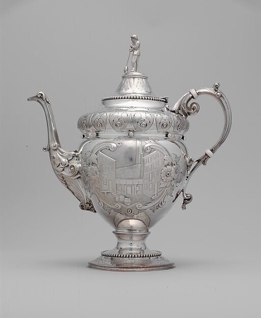 Teapot | Teapot | Wood and Hughes | 1862–63 | 205 | false | false | true | 706 | The American Wing | 2006 | American | 110 | Maker | 1845–99 | Wood and Hughes | American | 1845 | 1899 | 1,862 | 1,863 | Silver | 11 1/4 x 9 15/16 in. (28.6 x 25.2 cm) | Friends of the American Wing Fund, 2006 | Made in | New York | United States | http://www.metmuseum.org/art/collection/search/205 | https://www.wikidata.org/wiki/Q116373607 | null | Metropolitan Museum of Art, New York, NY | Factories|Men | http://vocab.getty.edu/page/aat/300006232|http://vocab.getty.edu/page/aat/300025928 | https://www.wikidata.org/wiki/Q83405|https://www.wikidata.org/wiki/Q8441 | 000000172 | success | null | null | null | null | null | {} | 64de0d7c4d06074eb77c33ae206e399bc09911322c5bb65f8d6af4c685a71360 | |||||||||||||||||||||